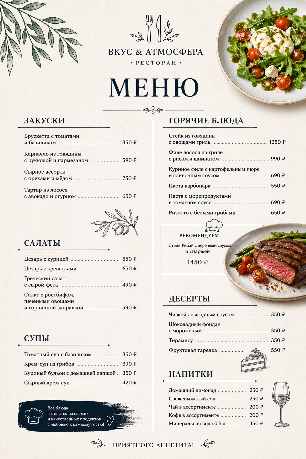 Эксклюзивные блюда от шеф-повара для истинных гурманов.
